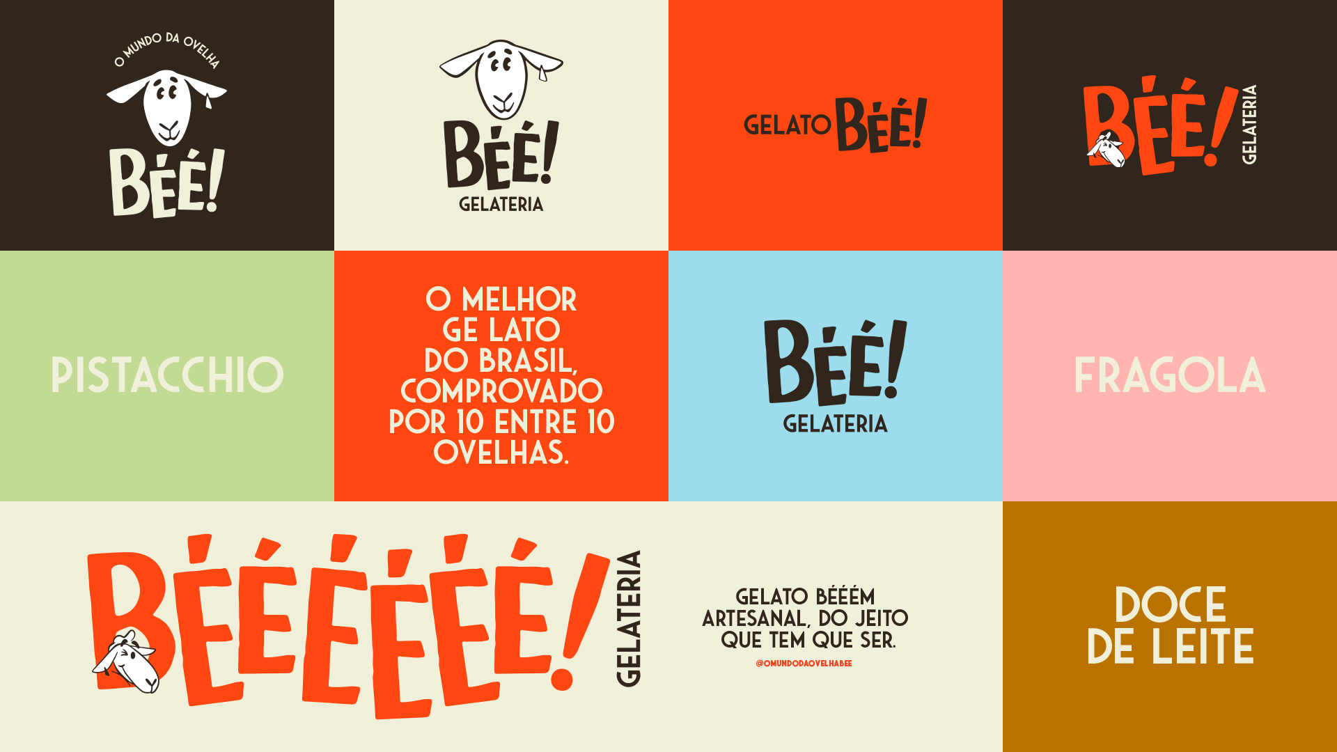 Na identidade, o trabalho partiu de um ponto central: dar mais protagonismo ao nome. Béé passou a ocupar um lugar de destaque na hierarquia visual e também na identidade verbal, com frases, apropriações e construções de linguagem que tornam a comunicação mais distinta e proprietária.